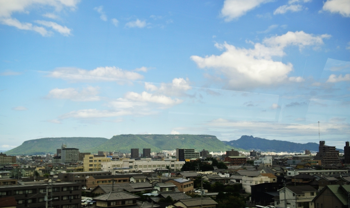 この辺りには「讃岐富士🗻」といわれる「飯野山」をはじめとした円錐形の三角の山がいくつも見える。これには地質学的な理由があり、風化浸食されやすい花崗岩の上にされにくい安山岩がのった地形だ。