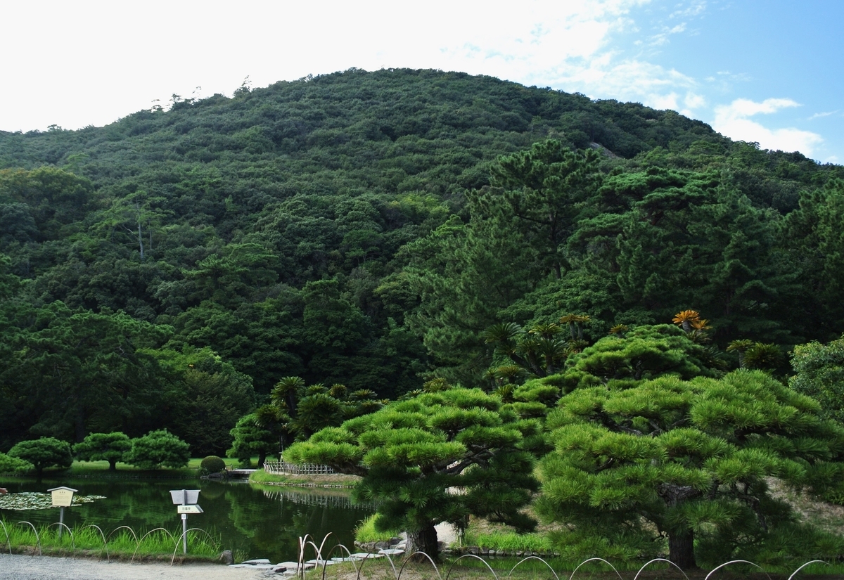 「栗林公園」に到着。広さは25万坪(ゴルフ場並)